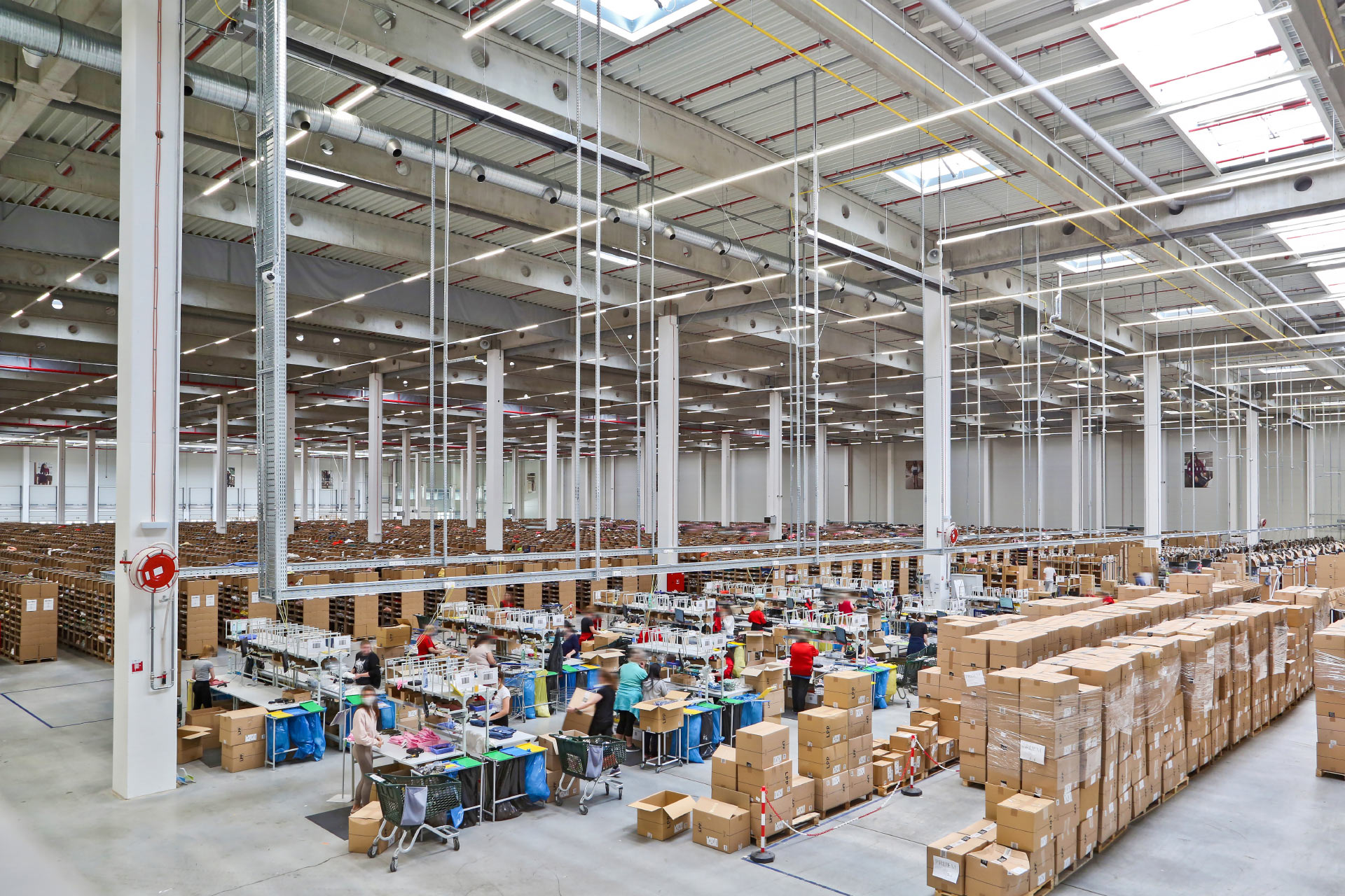 The building has been divided into two parts, the first one with an area of 17,000 m2 is mostly dedicated to manual operations. The second part (15,000 m2) is dedicated to automatic solutions and cross-dock operations of goods intended for the stores chain. It has also been equipped with high storage racks for e-commerce and brick-and-mortar stores from the Central Europe region. The total storage area for this purpose includes as many as 2040 pallet spaces. Despite the relatively short time that has passed since the launch of the facility, the maximum number of products that entered and left the warehouse in one day has reached 152,000.