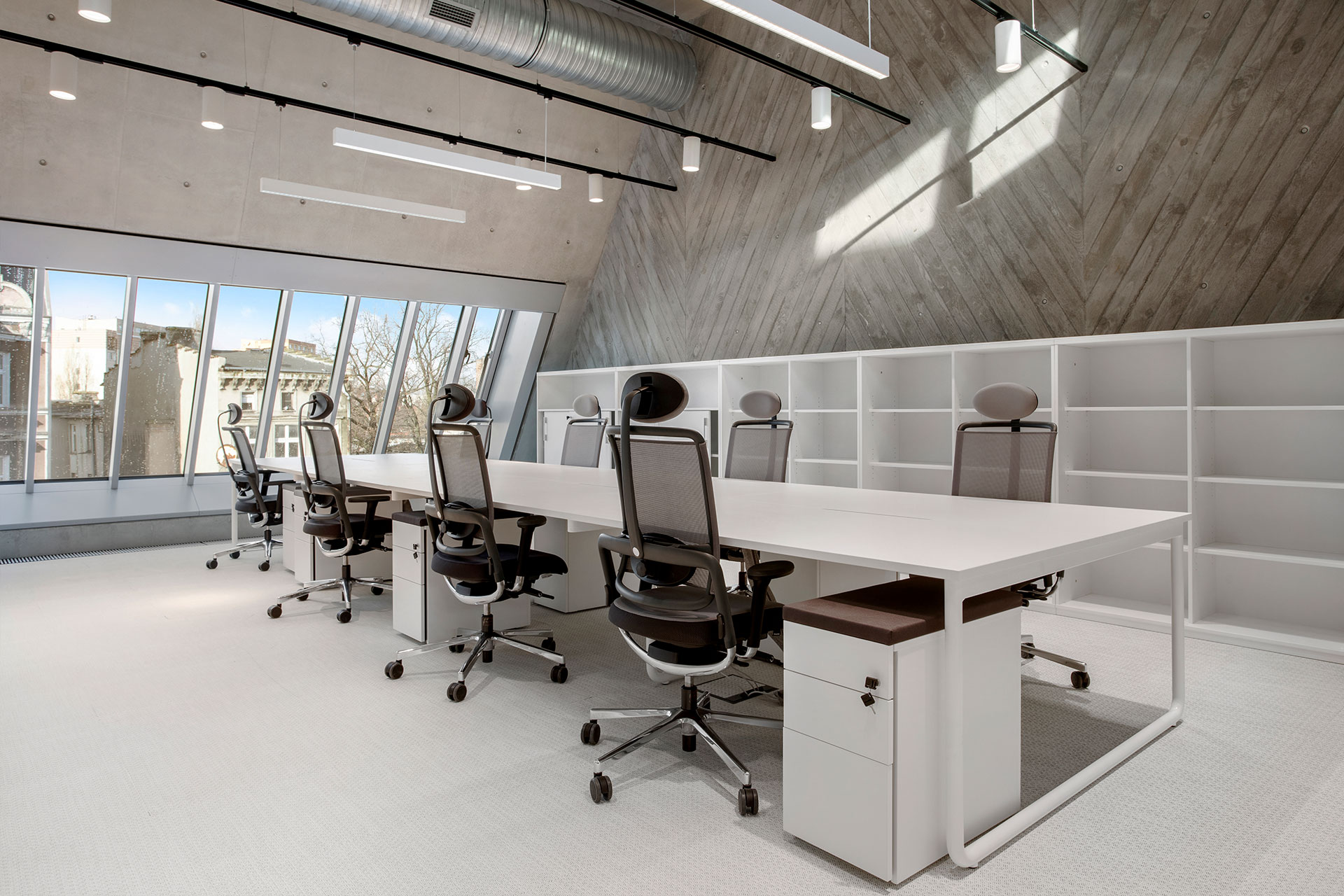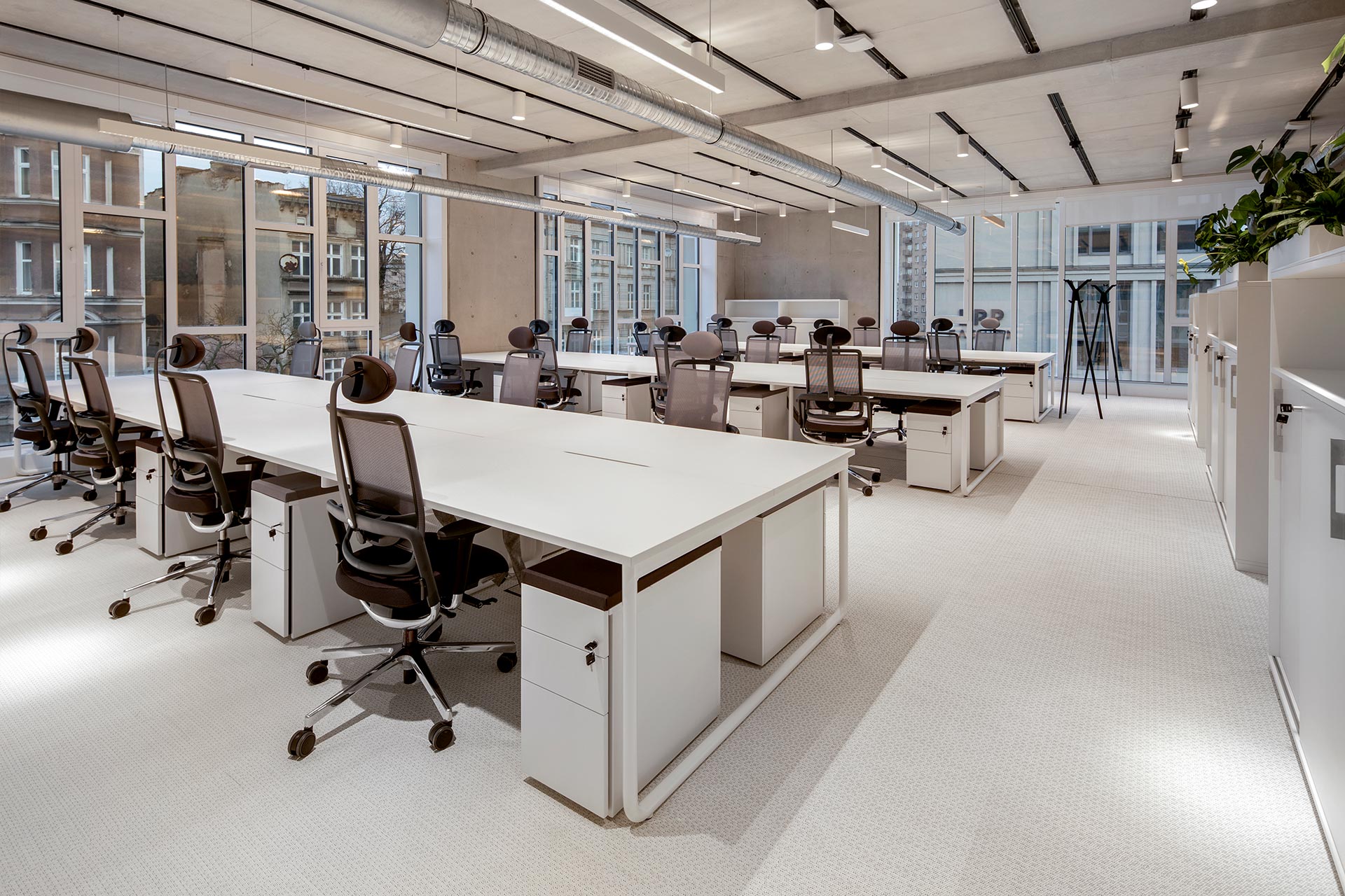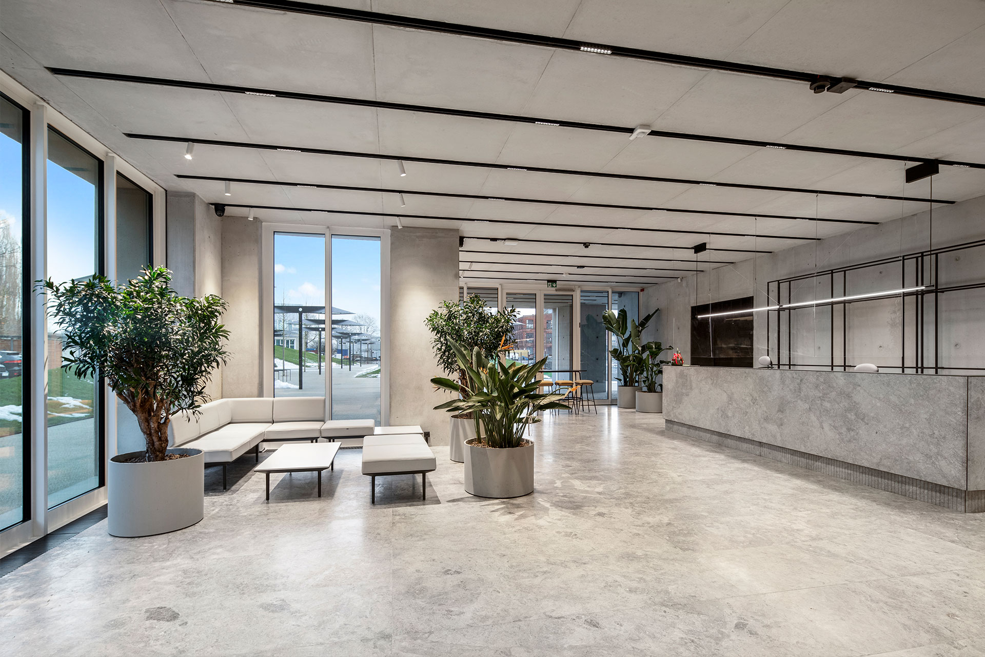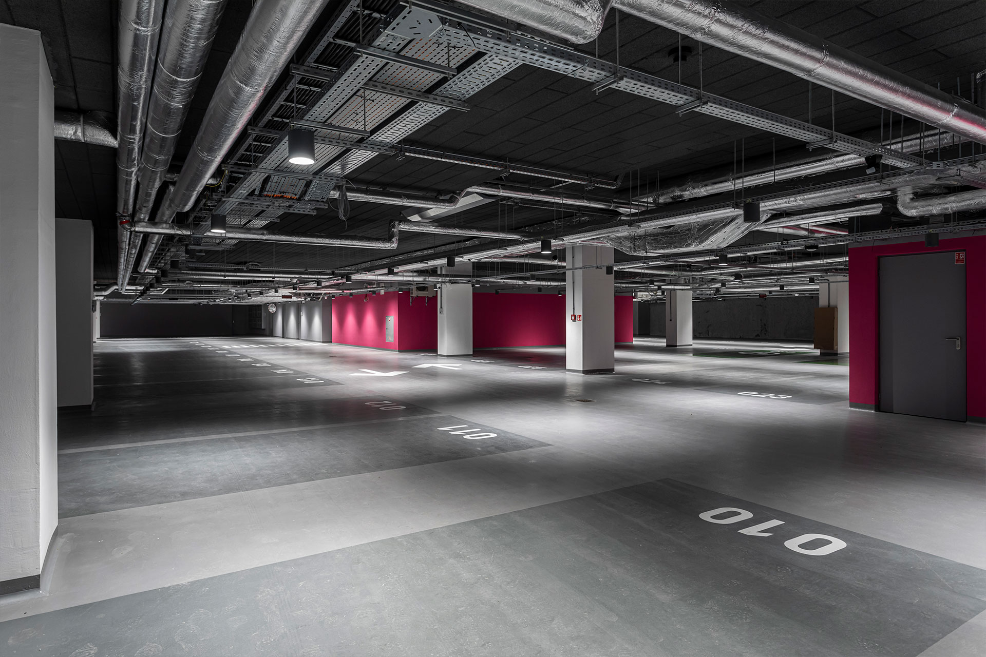 Green technologies present throughout the building also include energy-efficient lighting using LED lamps with intensity sensors. By adjusting the amount of light to external atmospheric conditions, they determine the optimum illumination of rooms, while at the same time reducing energy consumption. To further reduce energy consumption, the building’s automation is managed by a modern BMS (Building Management System). which controls energy, heating, ventilation and air conditioning in an integrated manner. For the sake of the comfort of the residential areas in the neighbourhood, the company also wanted to limit the noise generated by the ventilation equipment. To this end, all the technical centres are located in the basement of the office building.