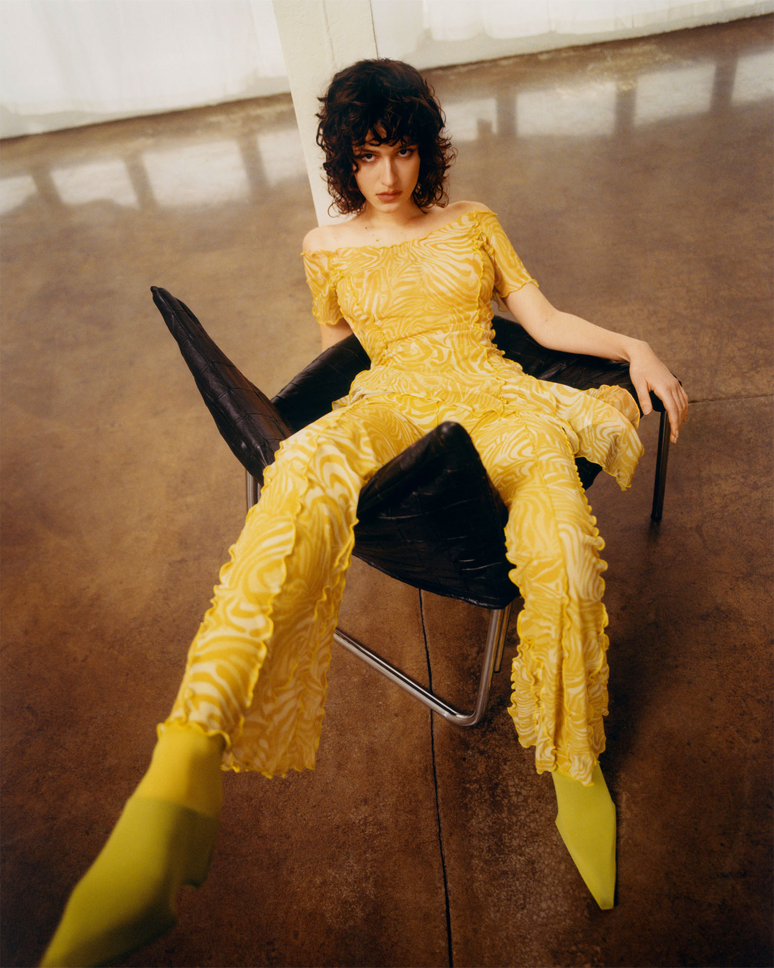 Bartek Wieczorek is responsible for the RE.DESIGN image session. Analogue photos present the models in their everyday, natural environment, at home, at work or simply relaxing. There are the new-found social realism elements, such as the Palace of Culture and Science in Warsaw, perceived by the new generation without the burden of the past as inspiring in their own way, documenting the history of their country and thus showing their value. A similar thing may be said about intensified colours typical of a photographic plate, giving extra emphasis to contrasting but paradoxically well-matched designs.