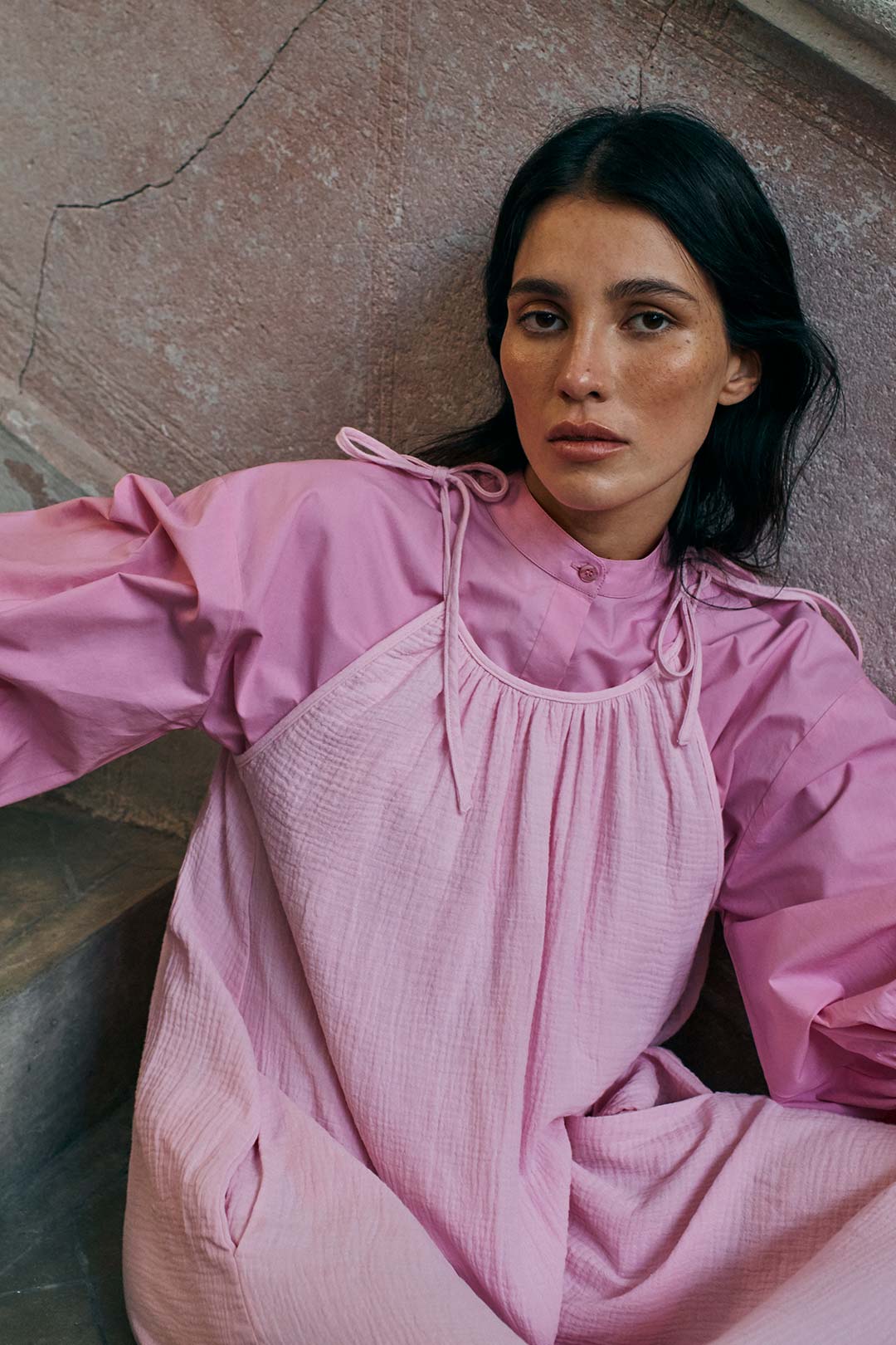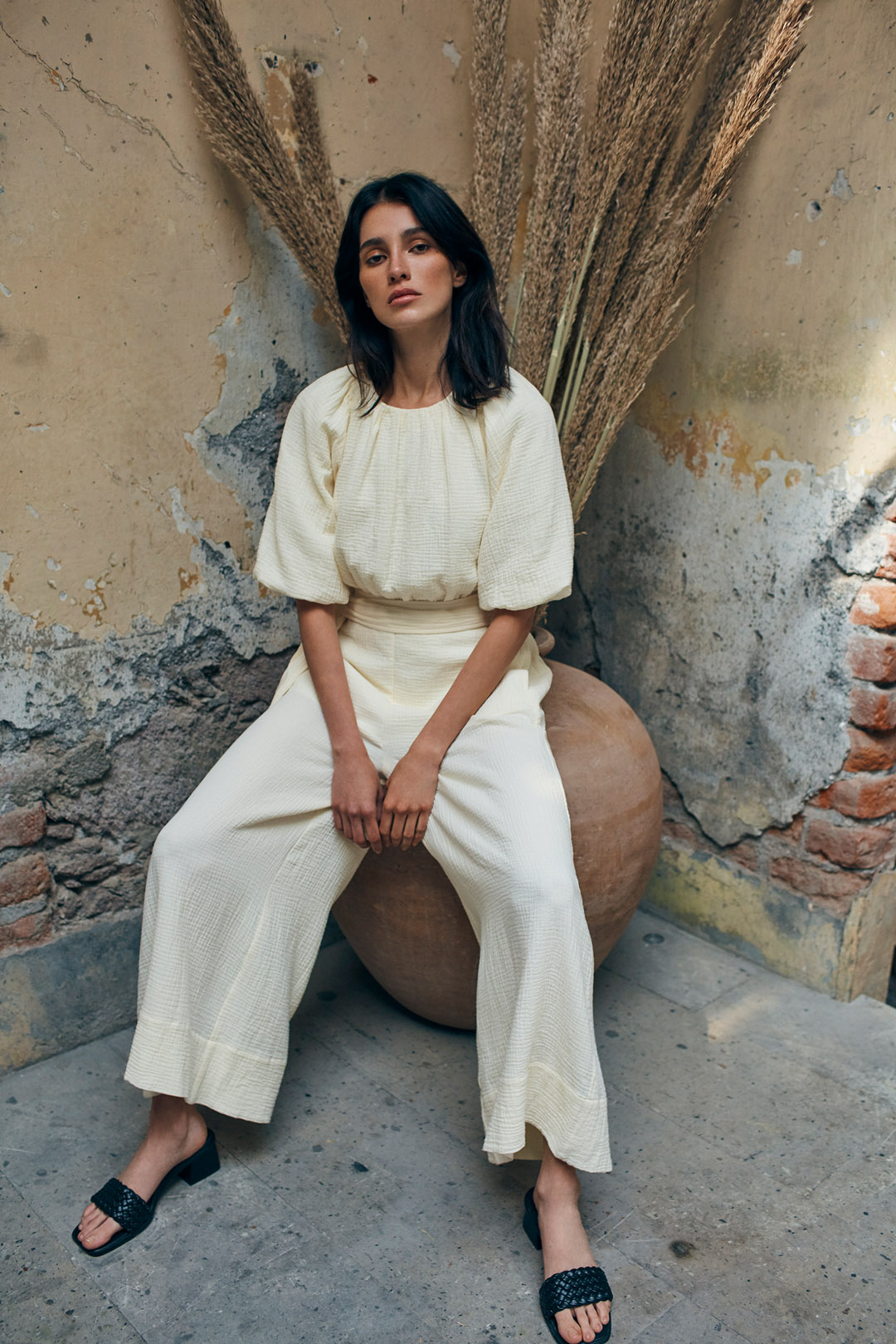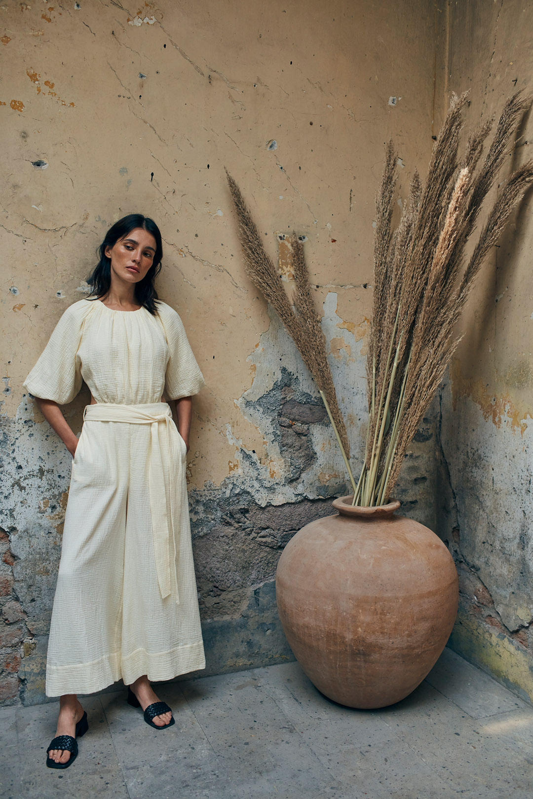 The image photo shoot, captured by photographer Sonia Szóstak and styled by Karla Gruszecka, further emphasises the synthesis of tradition and modernity. Beautiful yet time-stained southern interiors provide the perfect backdrop for the rawness and heritage all going hand in hand in the collection. Subtlety, softness and functional modernity are the definition of raw luxury: a life devoid of superfluous objects but full of things with history to them, souvenirs from travels or clothes that have a special value for us.