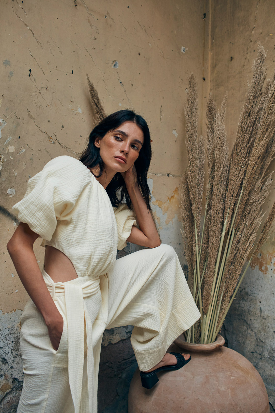 Sesja wizerunkowa w obiektywie Soni Szóstak i stylizacji Karli Gruszeckiej dodatkowo podkreśla syntezę tradycji z nowoczesnością. Piękne, lecz naznaczone czasem południowe wnętrza stanowią idealne tło dla surowości i dziedzictwa zawartych w kolekcji. Subtelność, miękkość i funkcjonalna nowoczesność składają się na definicję surowego luksusu: życia pozbawionego zbędnych przedmiotów, pełnego za to rzeczy z historią, pamiątek z podróży lub ubrań, które mają dla nas szczególną wartość.