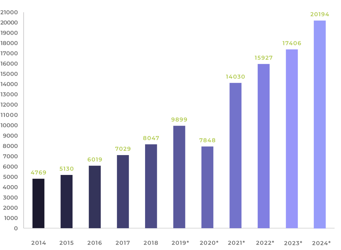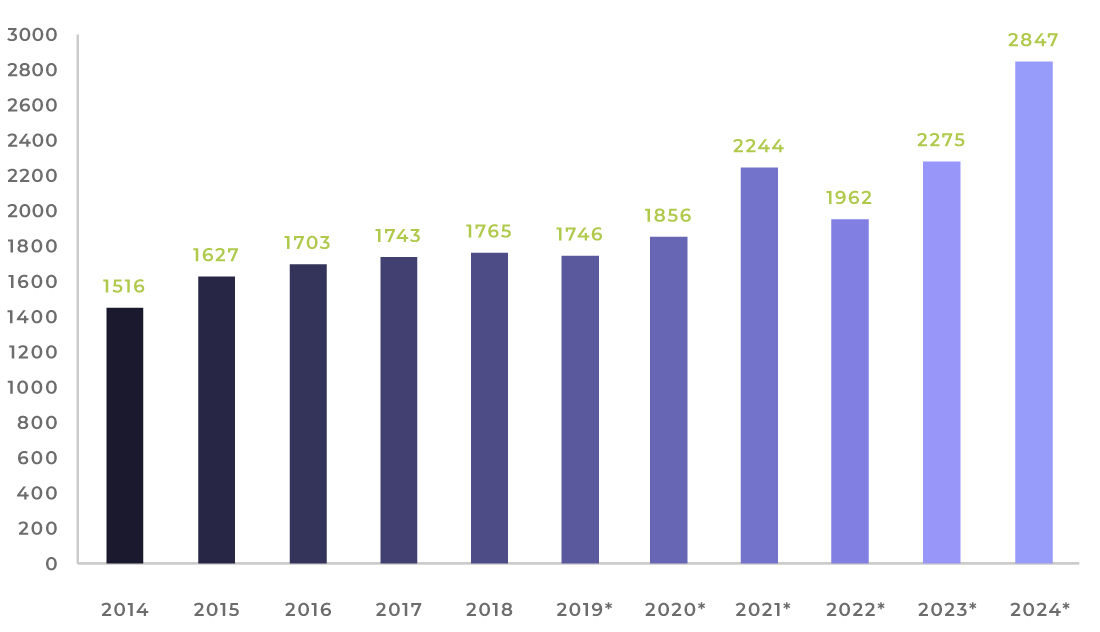 Sprzedaż LPP (mln PLN) (2014-2024)